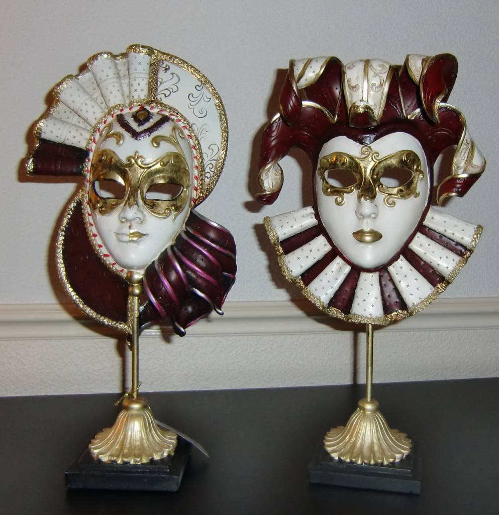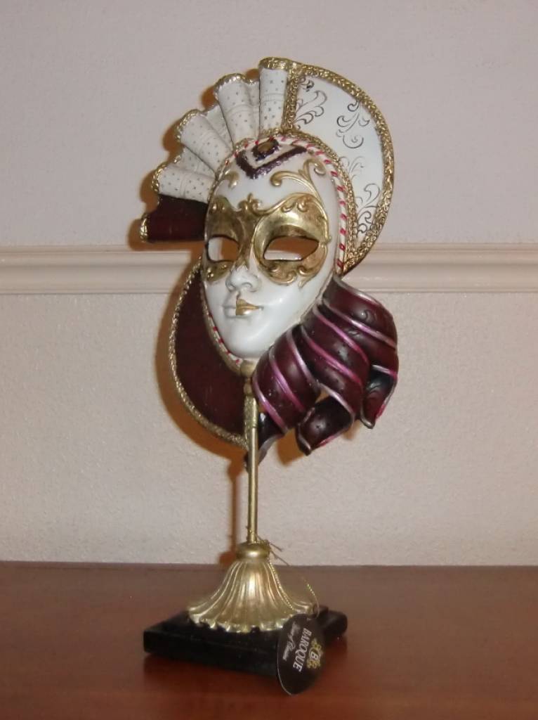 Attraktive barocke Maske auf Base, mit einer Höhe von 39 cm und 20 cm breit. Passt sehr gut in einem klassischen Design. Material: Keramik-ähnlichen Kunststoff.