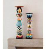 Dekorativer Kerzenhalter aus gestapelten Kugeln, die jeweils ein eigenes Malmuster und eine eigene Wölbung aufweisen. Dieser von Tom Hoffmann entworfene Kerzenständer ist handbemalt. Er lässt sich gut mit den anderen Größen dieser Serie kombinieren. Der Kerzenhalter ist seit langem Teil der Toms Drags-Kollektion, weil er zeitlos aussieht und die Nachfrage nach künstlerischen und farbenfrohen praktischen Designs ungebrochen ist.