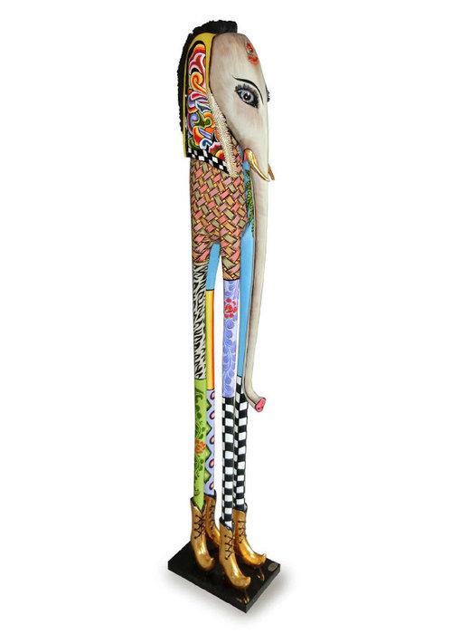 Toms Drags Elephant Miss Baba hergestellt aus Marmorin hat eine höhe von 15 cm (einschließlich Federn). Dieses farbenfrohe Karikatur eines Elefanten ist handgefertigt und handbemalt.