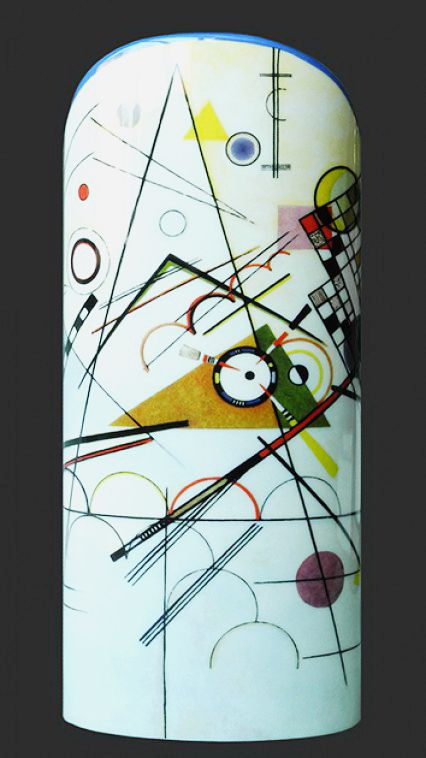 Diese Kandinsky-Vase mit dem Muster aus dem Gemälde "Composition VIII von 1923" gehört zu der Kunstvasen-Sammlung von "Silhouette d'Art für John Beswick".