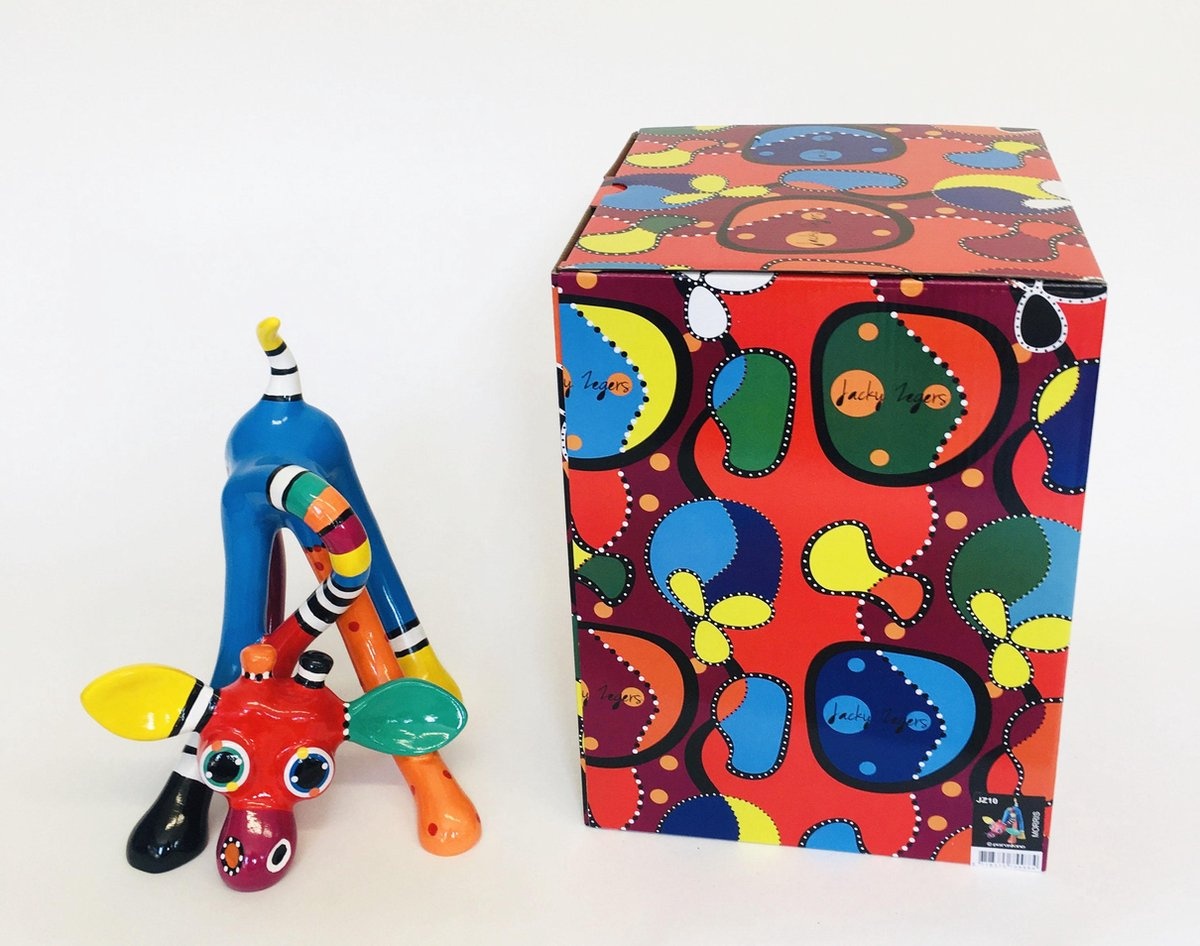 Rich in contrast, funny and smooth; that is the pop-art art of the Dutch artist Jacky Zeegers. This art object is trendy and original. Made of resin and delivered in a gift box.