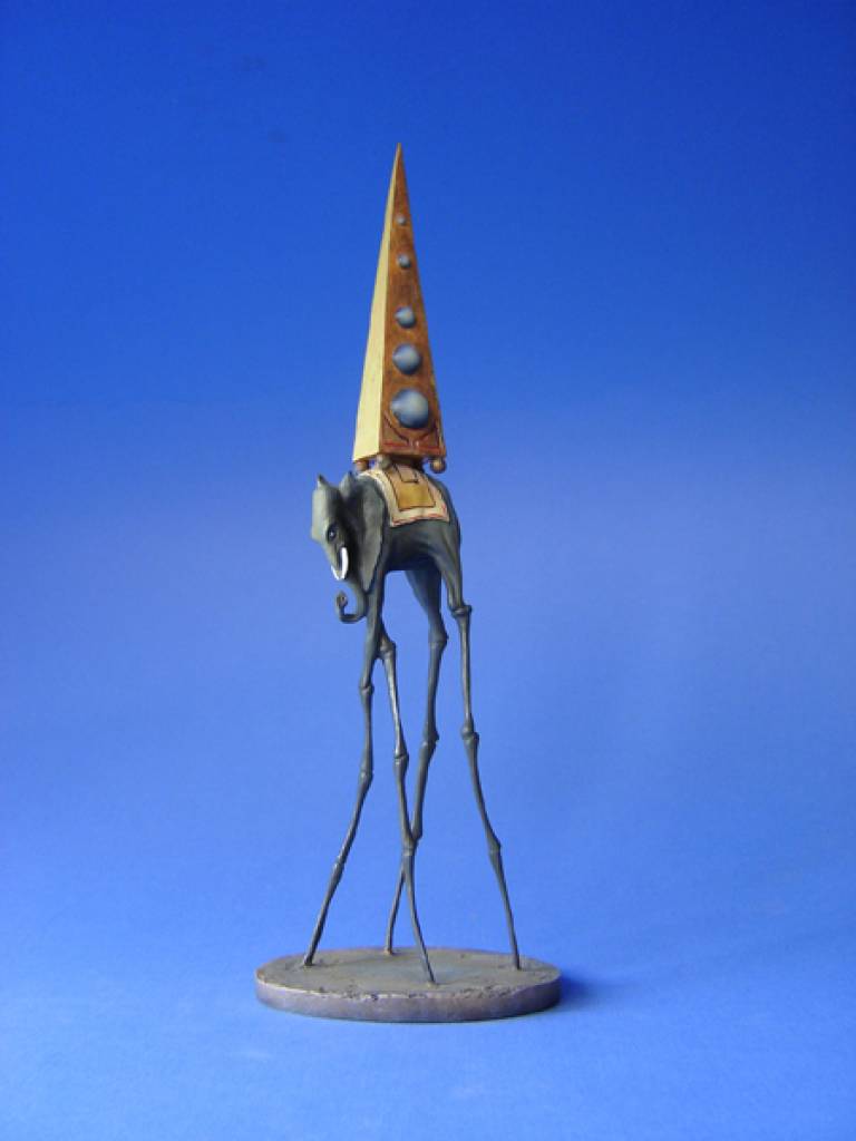 The elephant with extreme long legs, painted by Salvador Dali, called La tentation de St. Antoine, converted into a 3D figurine that is manufactured under license as part of the 3D-Mouseion collection and a sought after collector's item for fans of Dali.