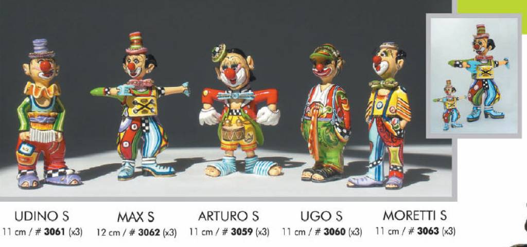 Happy smiling Drag clown Moretti, made of hand-painted marmorin.