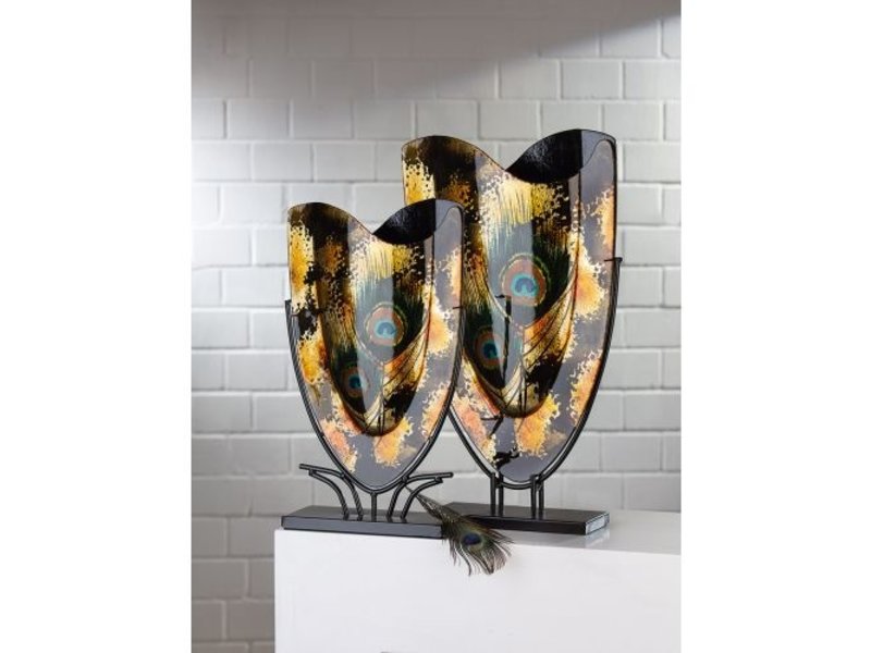 Slender decorative vase with gold accents and peacock feathers - oval XL