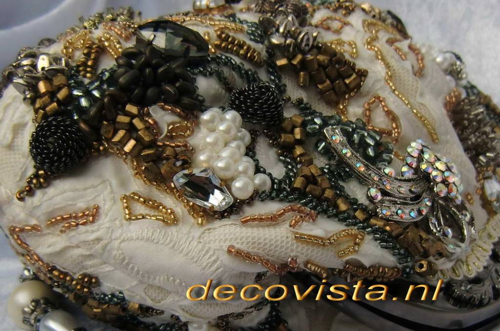 Materiales: Todas las bolsas están hechas de una mezcla de tela, cuero artificial, plástico, piedra, pedrería, lentejuelas, abalorios, metal. La composición de cada caso es diferente.