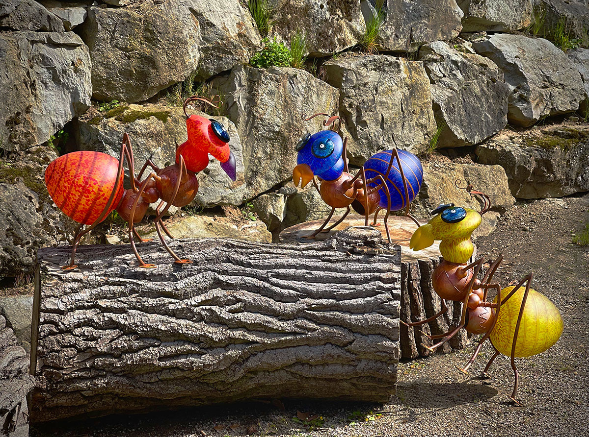 Una "pieza" de clase magistral de Borowski. El cuerpo de acero oxidado está decorado con finos detalles y forma un maravilloso contraste con los segmentos de vidrio soplado de colores. Ambos segmentos de vidrio están provistos de una fuente de luz. Los ojos anodizados en negro y las antenas elegantemente curvadas, realzan el encanto de esta criatura, que parece a la vez grácil y bien fortificada.