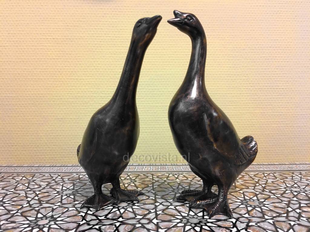 Los patos de par, de alta calidad, bronce sólido. Los patos son terminados con una pátina natural. Dimensiones por pato: (altura x longitud x ancho) aproximadamente 20 x 20 x 12 cm. peso 3300 gramos. El precio es por par