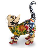 Verwachtingsvol kijkt dit schattige en kleurrijke katje Kitty naar je op. Met haar staart recht omhoog laat ze een grote genegenheid zien! Deze unieke Toms Drags-figuur is met de hand gemaakt en haar koppie is gedecoreerd met oogwimpers, lange zwarte snorharen, een hippe halsband en zelfs schattige oorbellen. Als kers op de taart draagt ze ook nog eens prachtige rode pumps aan haar pootjes en je ziet haar in gedachten al achter je aan huppelen! Met haar afmetingen van 30 x 21 cm is deze Kitty een echte blikvanger in huis. Haal dit kittige, vrolijke katje in huis en breng wat kleur en speelsheid in je interieur!