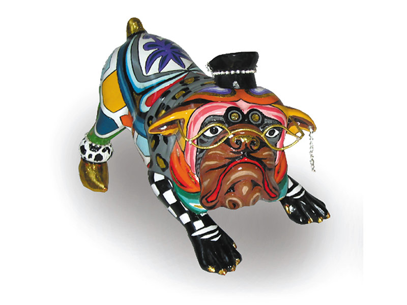 Stoere bulldog met een zachtaardig karakter. Op zijn kop draagt hij een zwarte politiepet en één oor is versierd met een lange oorbel. Hij draagt een paar gouden schoenen en op zijn neus een gouden bril, waar hij met zijn door oogwimpers versierde ogen doorheen kijkt. Hond Ewald is kleurrijk beschilderd met de bekende Toms Drags patronen.
