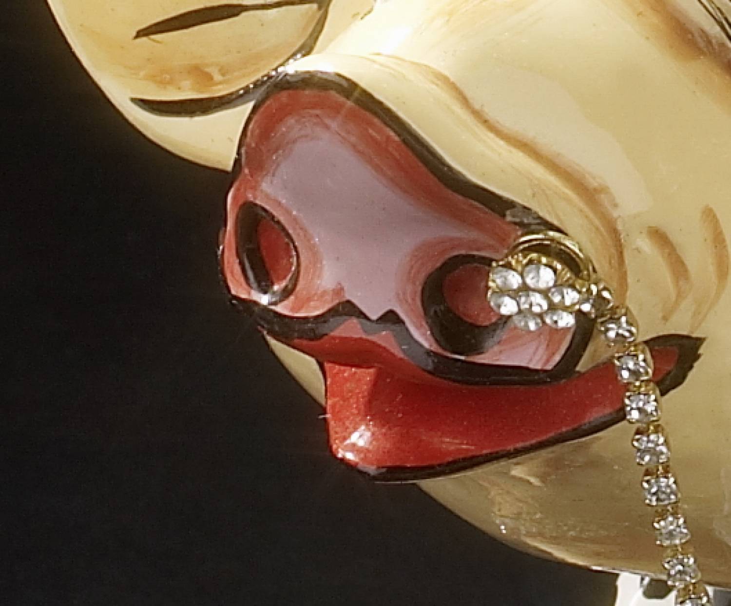 Heel decoratief beeld van een kleurrijk, versierd varken die "luistert" naar de naam "Lolita". Het beeld behoort tot de Diamond Collectie. Het dekseltje op haar rug is bezet met strass en geeft toegang tot een kleine opbergruimte waar je bijvoorbeeld ringen in kunt doen.